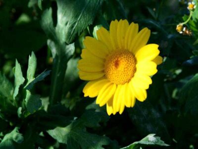 | Spiritueel: | In oude tradities werd de gele bloem geassocieerd met zon, leven en vruchtbaarheid. Bij zonnewende-feesten gebruikt als symbool van licht en overvloed. In latere tijden door haar verwantschap met chrysanten betekenis als eeuwigheid, herinnering en bescherming. In kerkhoven en religieuze gebruiken werd ze minder gebruikt dan de witte of paarse chrysant. |